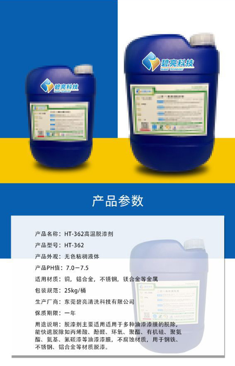 本产品为高温脱漆剂,脱漆剂主要适用适用于多种油漆漆膜的脱除,能快速脱除如丙烯酸、酚醛、环氧、聚醋、有机硅、聚氮酯、氨基、氟碳漆等油漆膜,不腐蚀材质,用于钢铁、不锈钢、铝合金等材质脱漆。